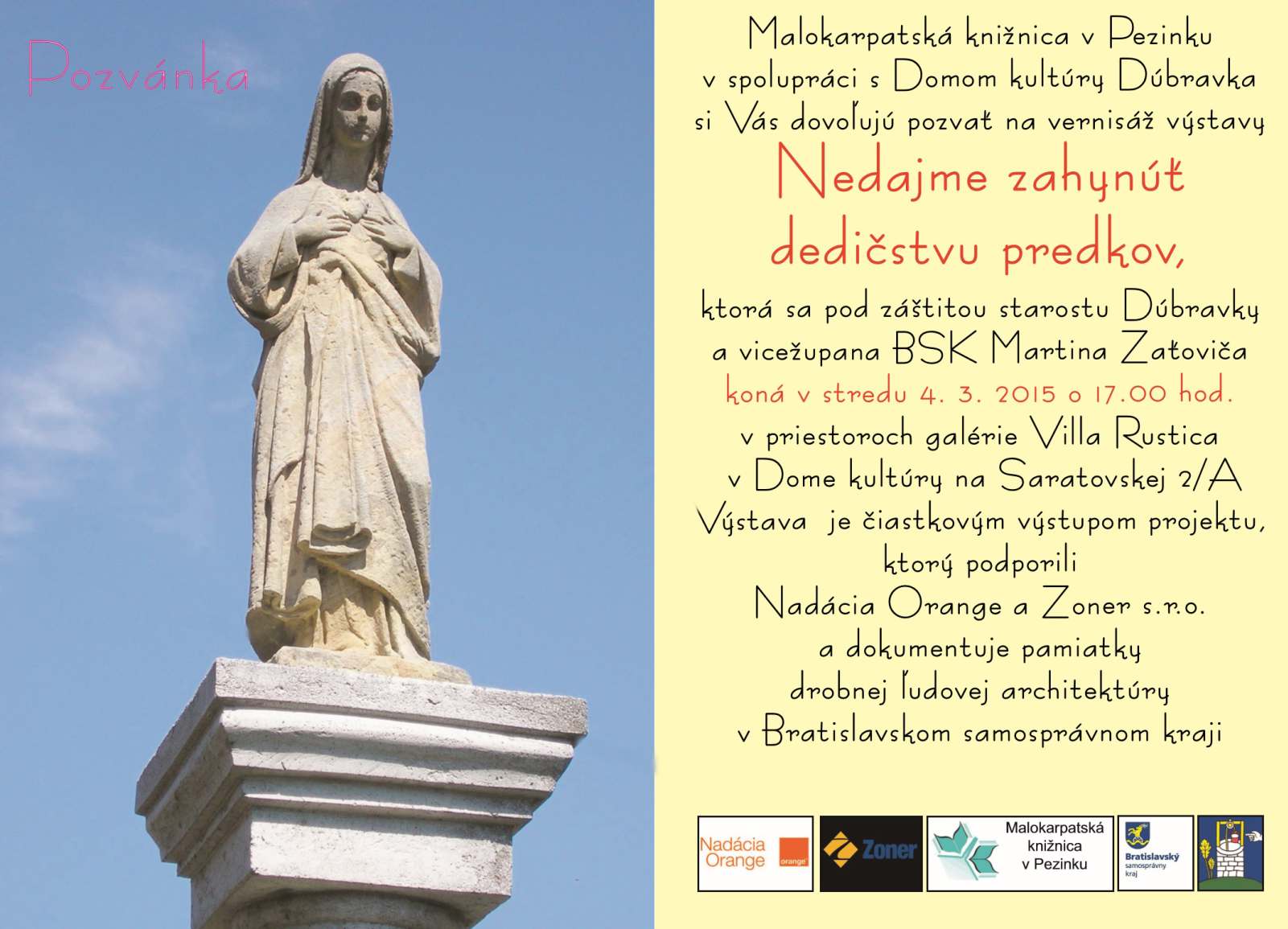 Upravené: 16.3.2015| Typ: JPG| Veľkosť: 161,99 kB| Stiahnuté: 2093| Súbor: Výstava Dúbravka 2015 pozvánka
