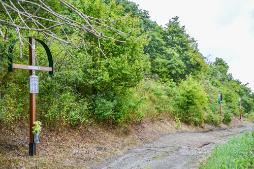 Kalvária sa nachádza na malom vŕšku (Vítkov vŕšok) v susedstve tunajších vinohradov. Stojí tu štrnásť drevených krížov s plechovými strieškami. Krížová cesta prechádza okolo malej jaskyni Panny Márie Lurdskej a končí na vrchole s trojkrížom. Tri veľké drevené kríže - hlavný s telom ukrižovaného Ježiša, a po stranách dva bočné - symbolizujú kalváriu ako miesto umučenia Pána. S myšlienkou vybudovanie kalvárie sa zaoberalo množstvo ľudí, napr. správca farnosti otec Július Foltán. V roku 2000 k Veľkému piatku inštaloval prvú krížovú cestu Ján Polčič, ktorý ju zhotovil s pomocou zaťa Ladislava. Krížová cesta pozostávala z kovových jednoduchých krížov, na ktoré boli umiestnené zalaminované obrázky výjavov z jednotlivých zastavení. V októbri 2001 sa objavili na vŕšku nové kríže krížovej cesty, ktoré dala zhotoviť rodina Jána Pretzelmayera. Ide o masívne drevené kríže s plechovými strieškami pevne osadené do kovových podstavcov. Vonkajšou formou sú prispôsobené trom hlavným krížom. Jednotlivé zastavenia krížovej cesty sú na krížoch označené rímskymi číslicami a textom. Zdroj: Dubovské noviny, Roč. 4, č. 4 (2005), s. 8 - 9.