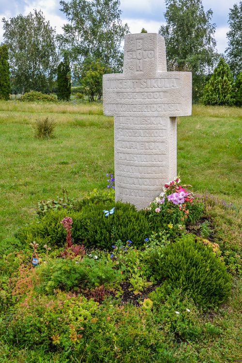 Pomník Vincenta Šikulu (1936-2001), rodáka z Dubovej, ktorý je na tunajšom cintoríne pochovaný. Pomník z pieskovca urobil sochár Alexander Ilečko, ktorému V. Šikula svedčil na svatbe, a s ktorým boli blízki priatelia. Na kríži sú názvy literárnych diel V. Šikulu. Pomník bol odhalený v októbri 2004.