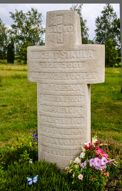 Pomník Vincenta Šikulu (1936-2001), rodáka z Dubovej, ktorý je na tunajšom cintoríne pochovaný. Pomník z pieskovca urobil sochár Alexander Ilečko, ktorému V. Šikula svedčil na svatbe, a s ktorým boli blízki priatelia. Na kríži sú názvy literárnych diel V. Šikulu. Pomník bol odhalený v októbri 2004.