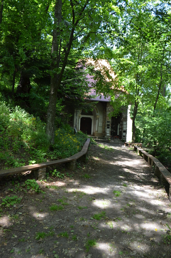 Kaplnka svätého Leonarda z roku 1360 s jaskynnou časťou na kalvárii.