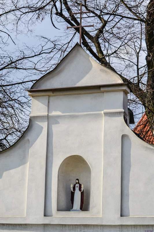 Areál kostola ohraničuje kamenný múr na východnej strane prerušený vstupnou bránou s polkruhovým vstupným otvorom. Plocha brány je ukončená malou rímsou, na ktorú dosadá esovito ohýbaný štít ukončený nadstavcom s dvojkrížom vo vrchole. V jeho strednej osi v tabuľovom poli vymedzenom hladnými pilastrami s rímsovými hlavicami je nika určená na umiestnenie sošky svätca. Zdroj: Bernolákovo 1209-2009, s. 180.