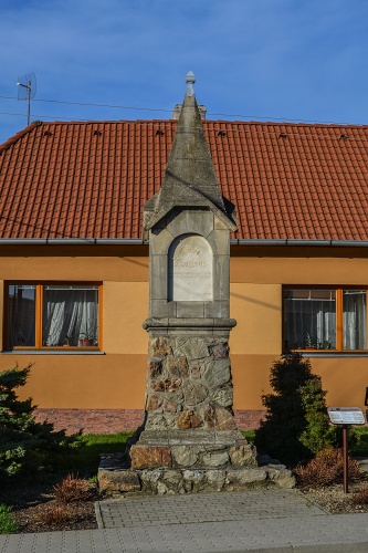Kamenný pomník postavila v roku 1926 Matica slovenská na počesť Juraja Fándlyho, najplodnejšieho slovenského spisovateľa prelomu 18. a 19. storočia. Na pomníku sú umiestnené tri tabule s textom. Na centrálnej strane je text: „Jurovi Fándlymu, slovenskému buditeľovi a spisovateľovi, ktorý v tejto obci zomrel 7. marca 1811. Matica Slovenská.“ Na ľavej strane je zasa text: „V tejto obci Juraj Fándly prežil svoju mladosť, tu žil na odpočinku, zomrel 7. marca 1811 a je tu pochovaný. Doľany 1990“. A nakoniec, na pravej strane je citát z Fándlyho ódy Prátelské porozumení: „Kde som mal za mladu radost, v temto miste radostném, tam som sa na starost usadzil, k pokoju poslednému. Juraj Fándly, 1807“. https://sites.google.com/site/ozspolokdolany/aktuality