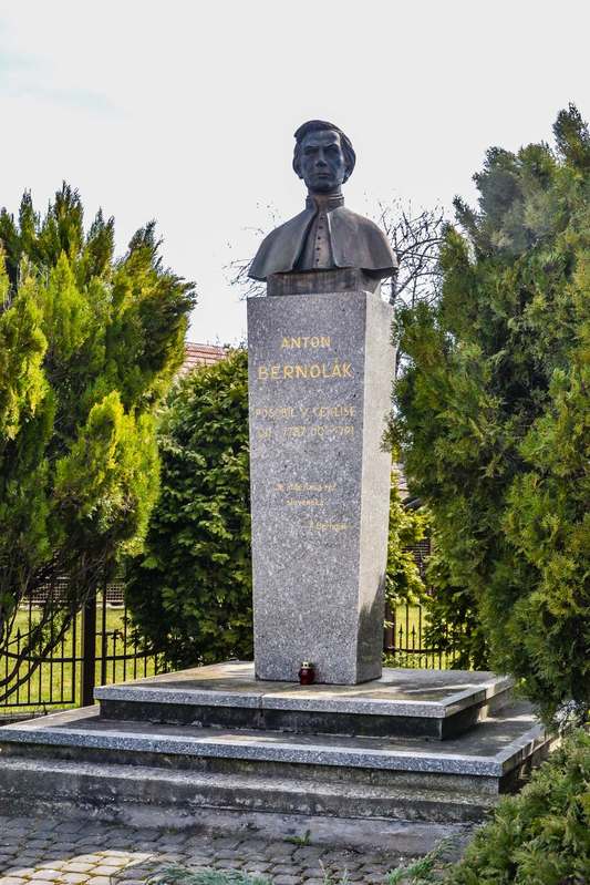 Pomník pamiatke priekopníka spisovnej slovenčiny a zakladateľa Slovenského učeného tovarišstva Antona Bernoláka, ktorý v Bernolákove pôsobil ako rímskokatolícky farár a dekan (1787 - 1791), bol odhalený 10.októbra 1937. Nachádza sa pred rímskokatolíckou farou. Je postavený na stupňovitom podstavci z umelého kameňa. Má štvorcovú podstavu, na ktorej je umiestnený zužujúci sa pylón. Na vrchu pylónu je bronzová busta Antona Bernoláka. Na čelnej strane je vytesaný text: "Milá je naša reč slovenská...". Autorom pomníka je akademický sochár Frico Motoška. Zdroj: http://www.bernolakovo.sk/
