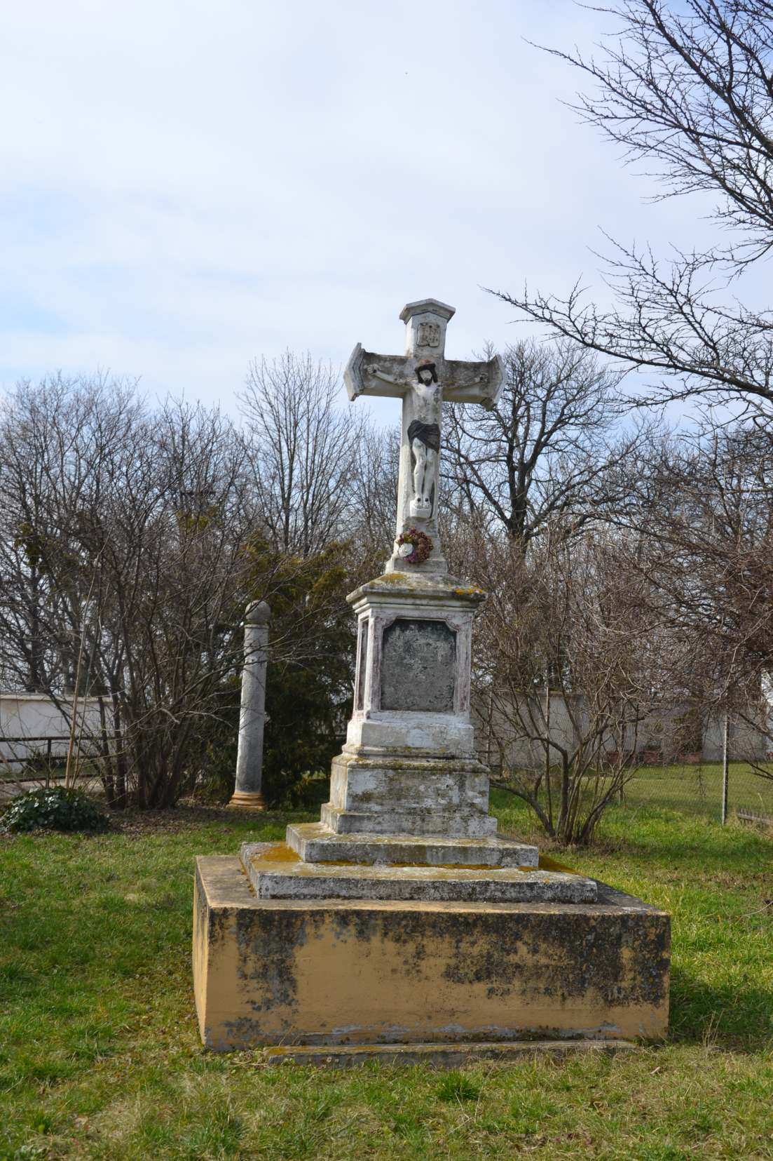 Pomník má podobnú architektúru ako božie muky na Trnavskej ul. Kríž s plastikou Ukrižovaného Krista stojí na stĺpe, v ktorého rozšírenej strednej časti sú z každej strany umiestnené nápisové tabule. Pôvodný stupňovitý podstavec je umiestnený na novom betónovom kvádri, ktorý slúži na uloženie kvetov. Pomník 43 Bernolákovčanom, ktorí zahynuli v prvej svetovej vojne. Zdroj: Bernolákovo 1209-2009, s. 192.