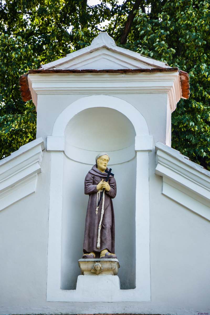 Socha sv. Antona nad vchodom do areálu Čierneho kláštora
