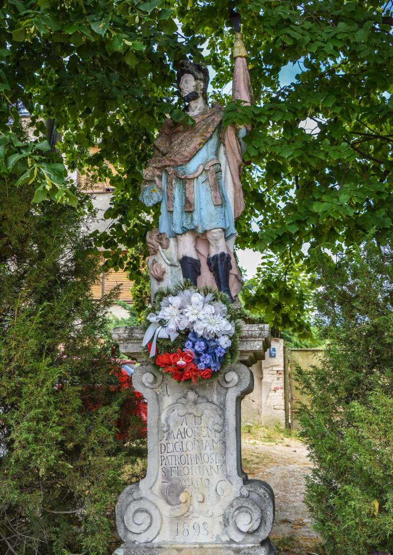 V dôsledku rozsiahleho požiaru v roku 1644 sa obec zaviazala, že bude svätiť deň svätého Floriána ako sviatok. Na počesť svätého ochrancu postavili veriaci v roku 1776 sochu, ktorá stojí na pravej strane cesty pred odbočkou na Červený Kameň.