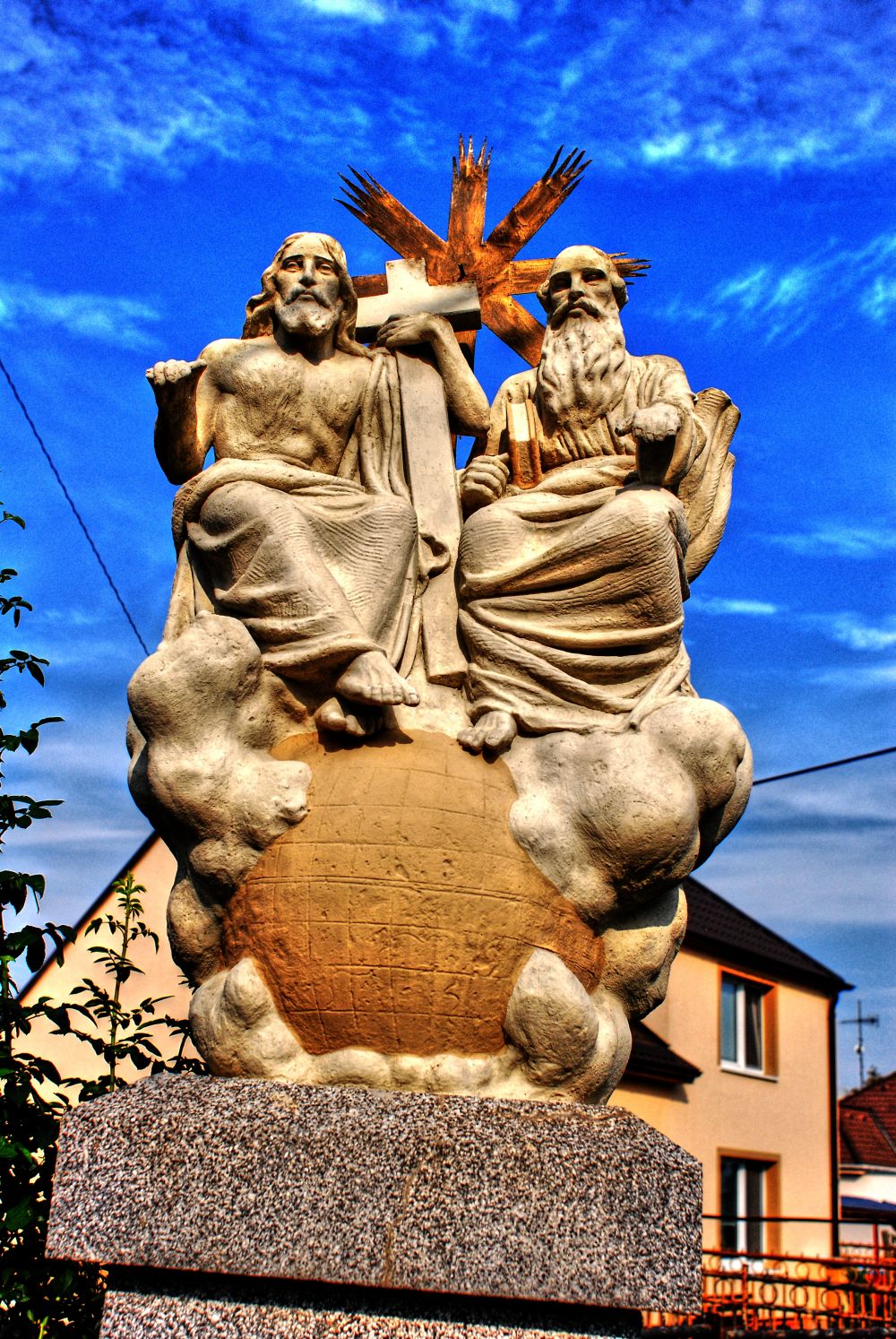 Socha najsvätejšej Trojice (Trojička) stojí na Cerovskej ulici pri cintoríne na Cerovom. Pieskovcové súsošie je umiestnené na štvorbokom nižšom podstavci. Dali ju postaviť manželia Vojtech Červenka a Apolónia v roku 1932. Zdroj: MIŠUNOVÁ, Silvia. Šenkvické pamiatky. Šenkvice: Obec Šenkvice, 2 s. [Leták]. Foto: Ľubo Navrátil