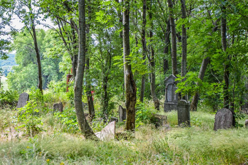 Starý židovský cintorín s barokovými náhrobnými kameňmi zo 17. a 17. stor.  sa nachádza v lesse pri hrade Červený Kameň. Je tu cca 40 deštruovaných náhrobných kameňov. (Foto: Ján Fiala)